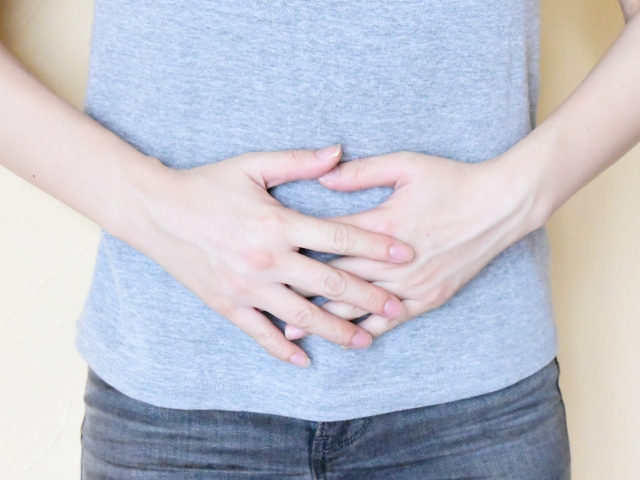 ・手をお腹に充てる