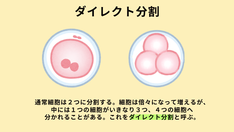 - ダイレクト分割:1つの細胞からいきなり3つに分かれてしまう