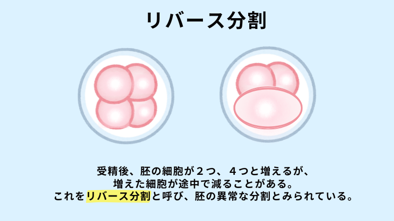 こうした胚は発育能力が低い傾向があることがわかっています。ただし、ダイレクト分割やリバース分割を起こした胚でも、最終的に胚盤胞(移植可能な段階)まで成長すれば、妊娠の可能性は通常の胚とほぼ変わらないとされています。