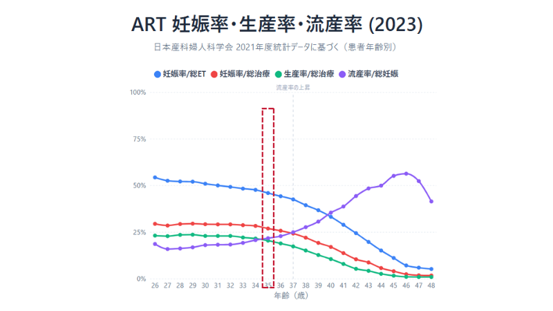 女性は35歳を境に、卵子の「質」の低下が顕著になり、1周期あたりの妊娠率が低下しはじめます。同時に流産率も上昇する傾向にあり、35歳からの妊活は「いかに時間を有効に使うか」が最大の鍵となります [※4]。