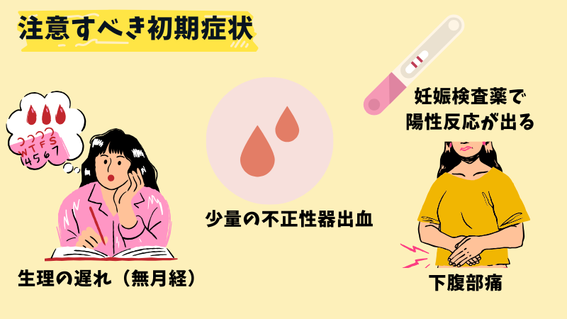 妊娠初期の症状は個人差が大きく、子宮外妊娠の症状も正常な妊娠の初期症状と似ているため、自分で「子宮外妊娠だ」と判断することは非常に困難です。しかし、注意すべきサインはいくつかあります。